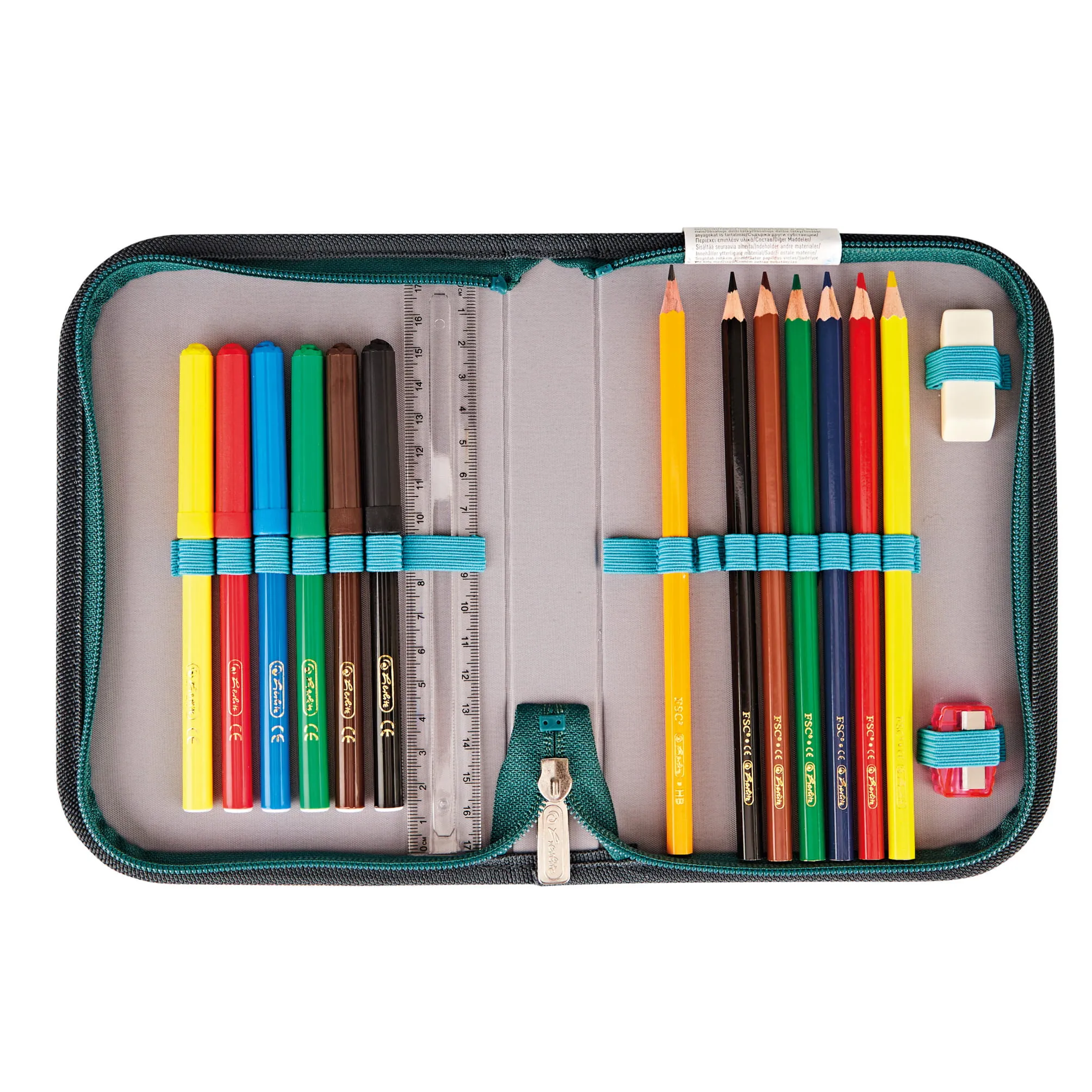 Na wyposażenie zamykanego na zamek piórnika składa się: