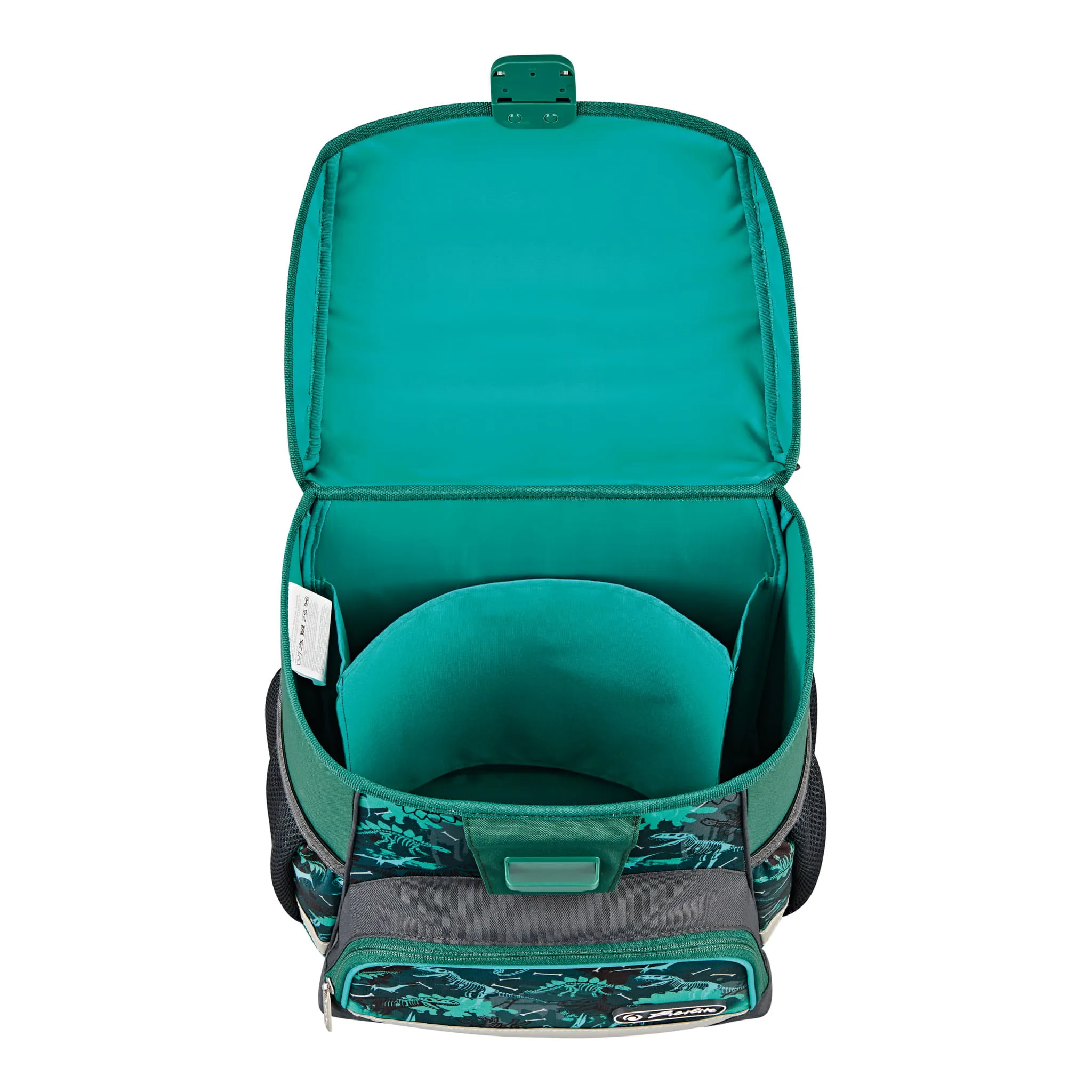 Plecak szkolny Herlitz Loop posiada nóżki stabilizujące oraz odblaski 3M Scotchlite na przedniej i bocznych kieszeniach oraz na szelkach. Wygodny uchwyt pozwala na komfortowe przenoszenie tornistra.