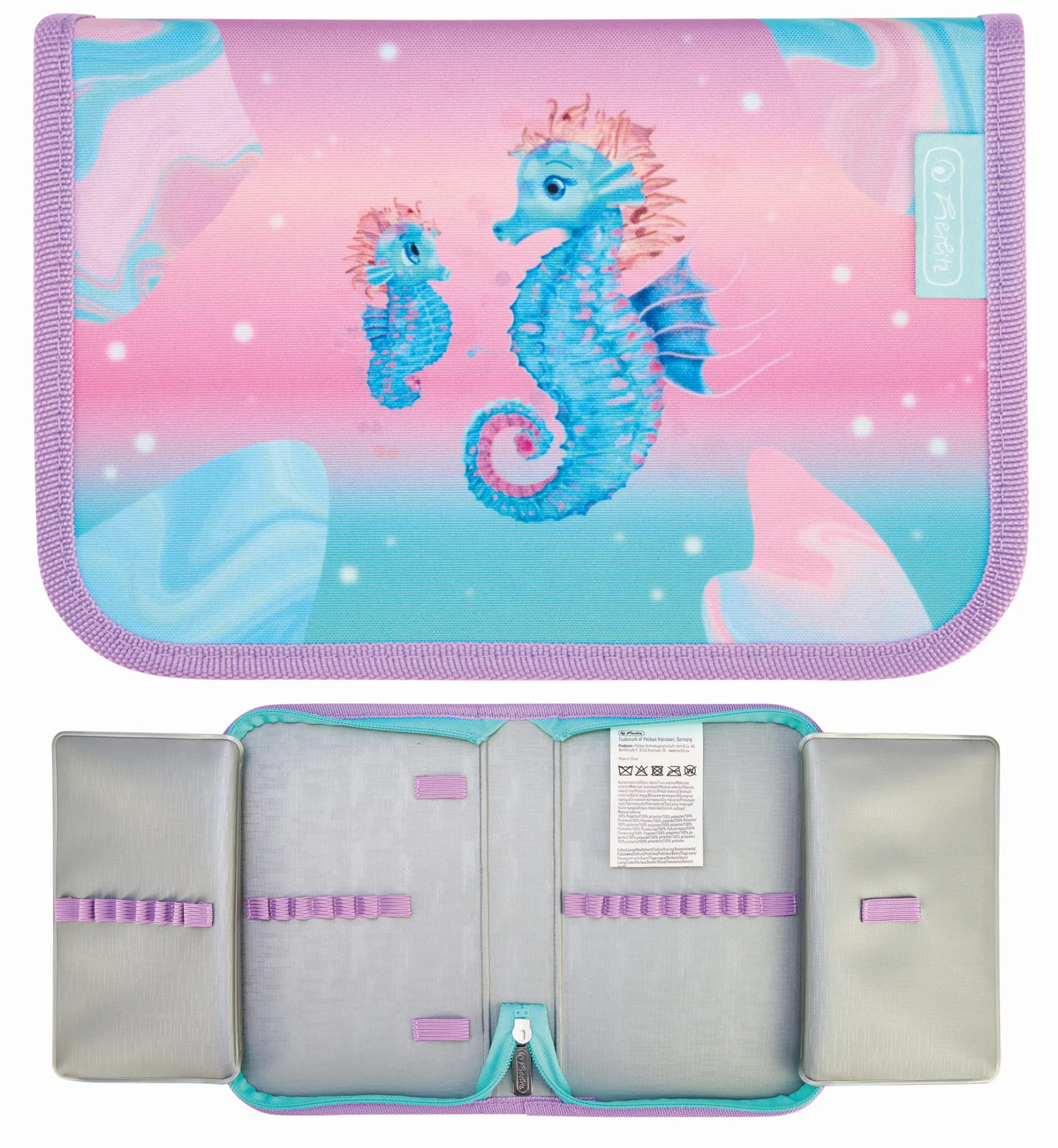 - Każdy piórnik został wyposażony w pojemne przegrody i elastyczne uchwyty, które umożliwiają uporządkowane przechowywanie przyborów szkolnych, takich jak długopisy, ołówki, markery czy gumki