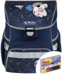 Plecak szkolny Herlitz Loop posiada nóżki stabilizujące oraz odblaski 3M Scotchlite na przedniej i bocznych kieszeniach oraz na szelkach. Wygodny uchwyt pozwala na komfortowe przenoszenie tornistra.