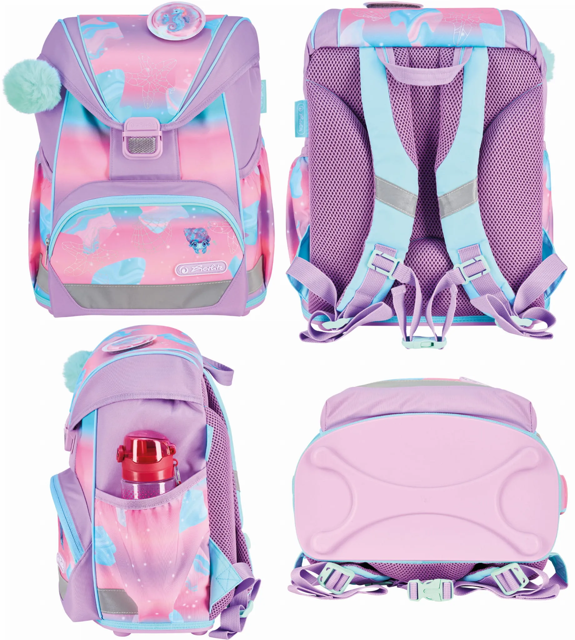 Tornister szkolny Herlitz Ultralight posiada materiał odblaskowy w przedniej części, po bokach oraz na szelkach i dodatkowy odblask na klamrze zapewniają szybką widoczność na drodze.