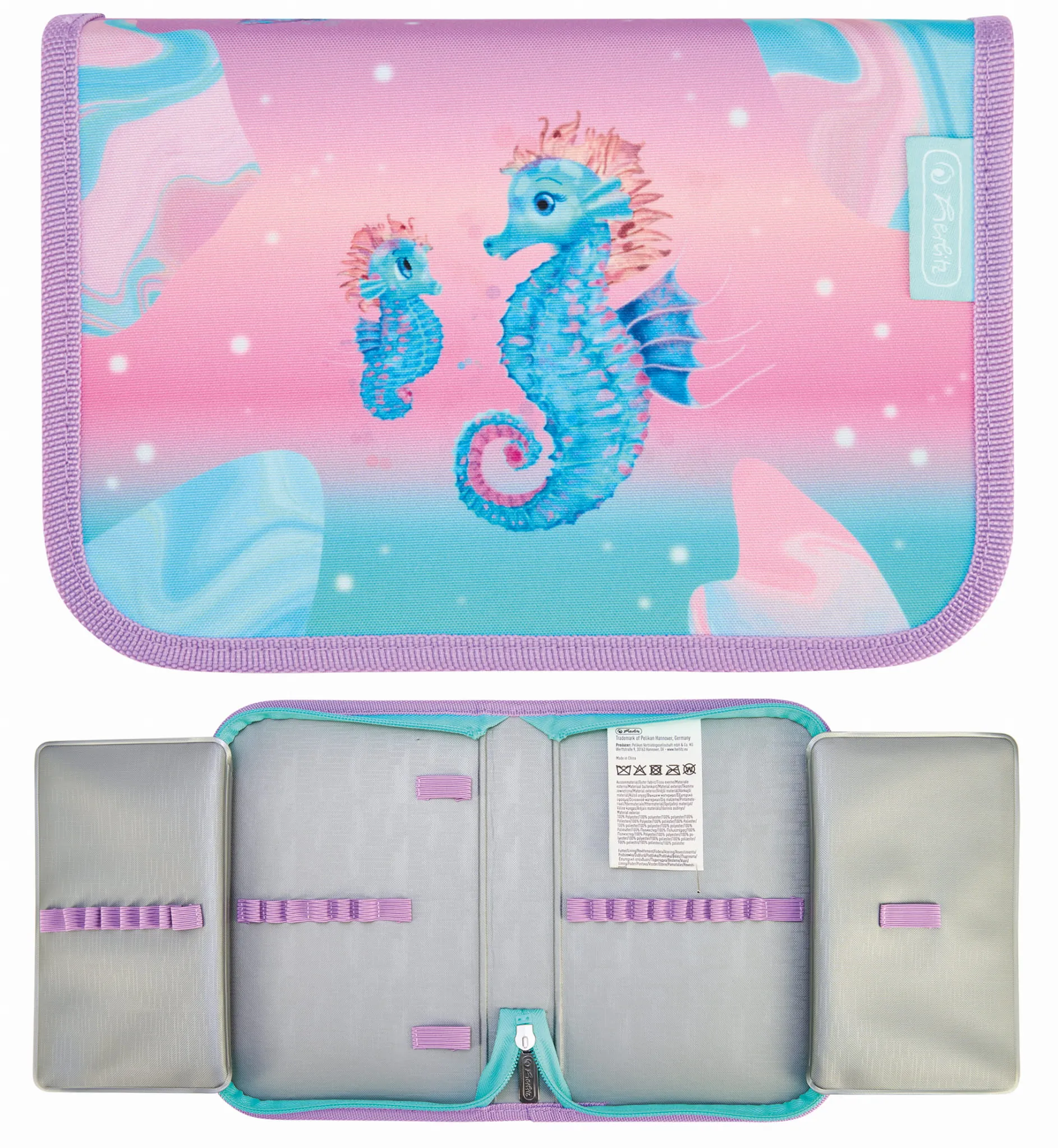 - Każdy piórnik został wyposażony w pojemne przegrody i elastyczne uchwyty, które umożliwiają uporządkowane przechowywanie przyborów szkolnych, takich jak długopisy, ołówki, markery czy gumki