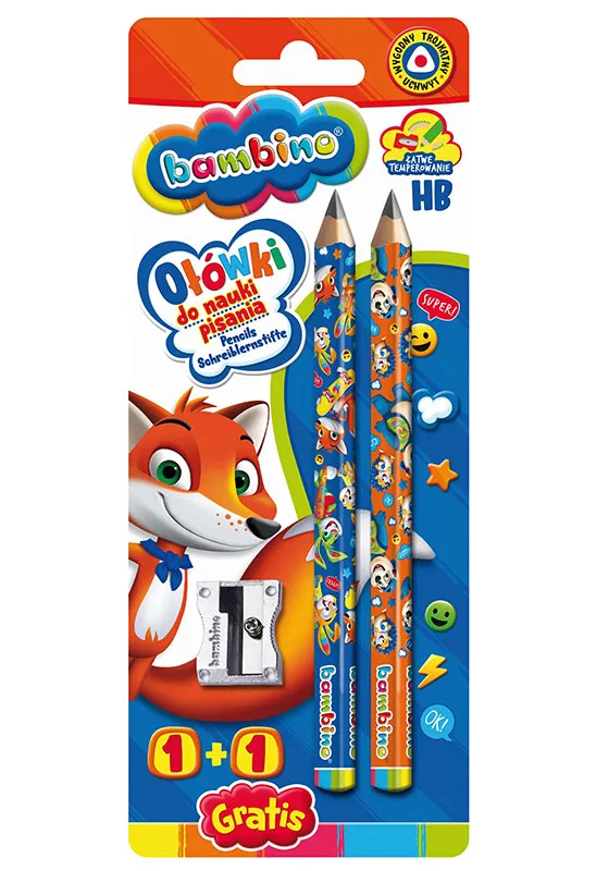 - Trójkątne ołówki JUMBO do nauki pisania Bambino - 2 sztuki z temperówką