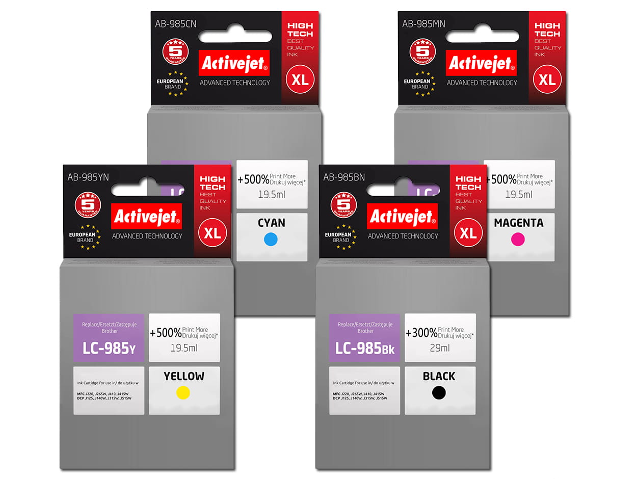Tusz ActiveJet AB-985 do drukarki Brother (zamiennik LC985) DCP-J125 DCP-J315W XXL – komplet