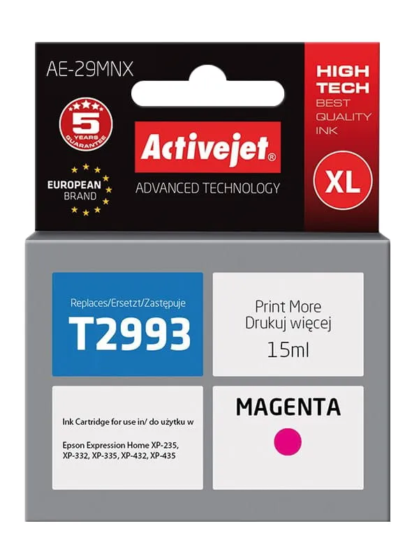 Tusz ActiveJet AE-29MNX do drukarki Epson (zamiennik 29XL T2993) XP-235 XP-245 XP-247 XP-332 – czerwony (magenta)