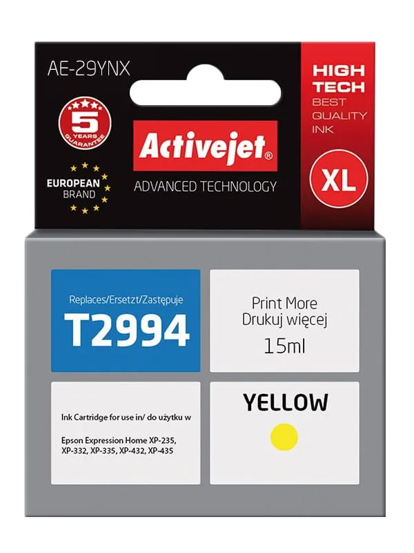 Tusz ActiveJet AE-29YNX do drukarki Epson (zamiennik 29XL T2994) XP-235 XP-245 XP-247 XP-332 – żółty (yellow)
