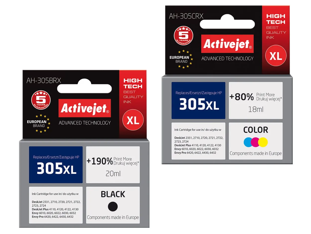Tusz ActiveJet AH-305BRX/AH-305CRX do drukarki HP (zamiennik HP 305XL) – komplet