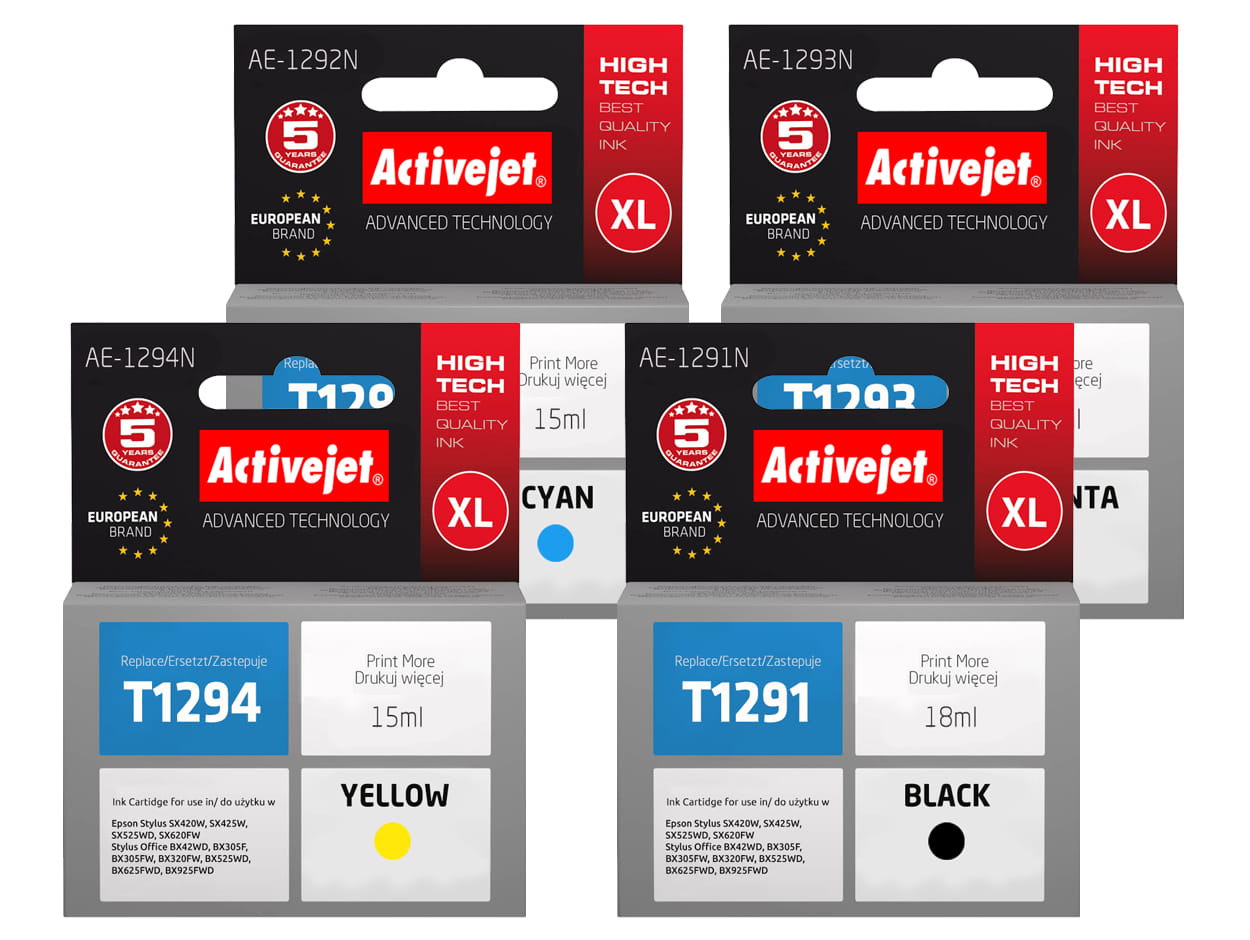 Tusze ActiveJet do drukarki Epson (zamiennik T1291-94) SX425 SX525 BX525 SX620 BX625 – komplet
