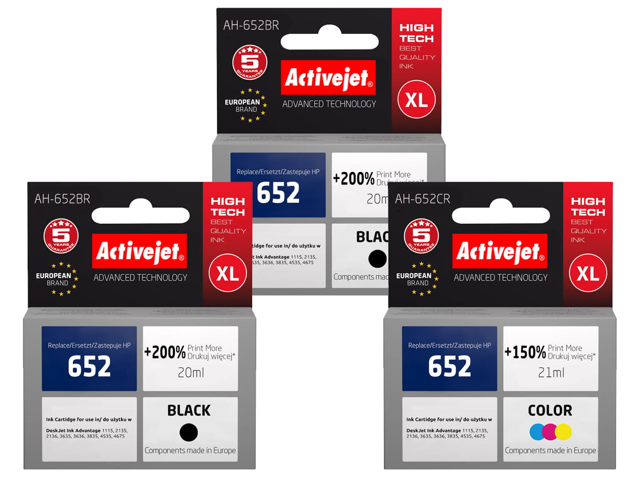 Tusze ActiveJet do drukarki HP (zamiennik nr HP 652) Ink 1115 2315 3635 – komplet 2 x 652BK, 1 x 652C