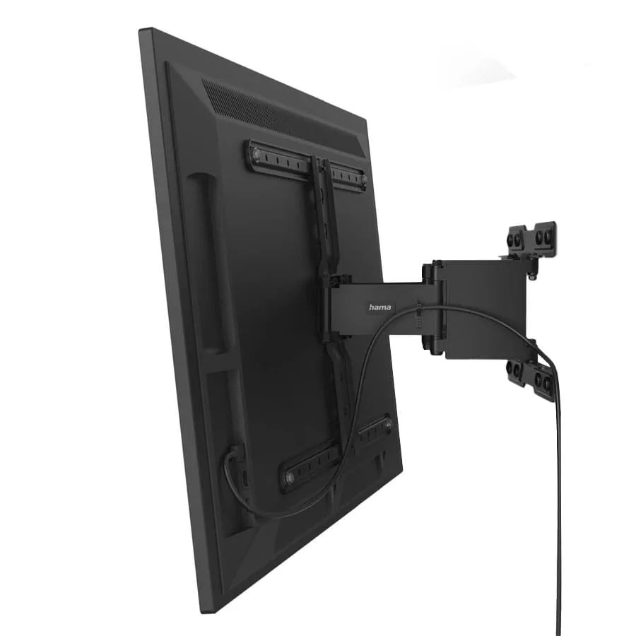 Po zamocowaniu telewizora uchwyt ścienny można w pełni dopasować do własnych potrzeb i zmieniać ustawienie w dowolnym momencie. Dzięki temu obraz zawsze będzie idealnie widoczny z każdego punktu pokoju. Hama Fullmotion pozwala na pochylenie telewizora, przesuwanie go na boki, przybliżanie i oddalanie od ściany.