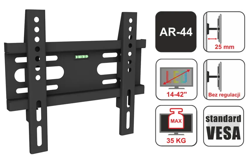 Model AR-44 to doskonały wybór dla posiadaczy telewizorów w rozmiarach 14 - 42" i wadze do 35 kg.