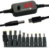 - Jeden kabel – setki zastosowań – nasz adapter zakończony jest uniwersalnym wtykiem DC 5.5/2.1, jednak w zestawie znajdują się liczne adaptery - w tym inny, uniwersalny wtyk 5.5/2.5.