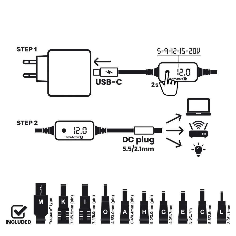 Do niezawodnej pracy z naszym adapterem rekomendujemy użycie ładowarek USB-C Power Delivery marki everActive.