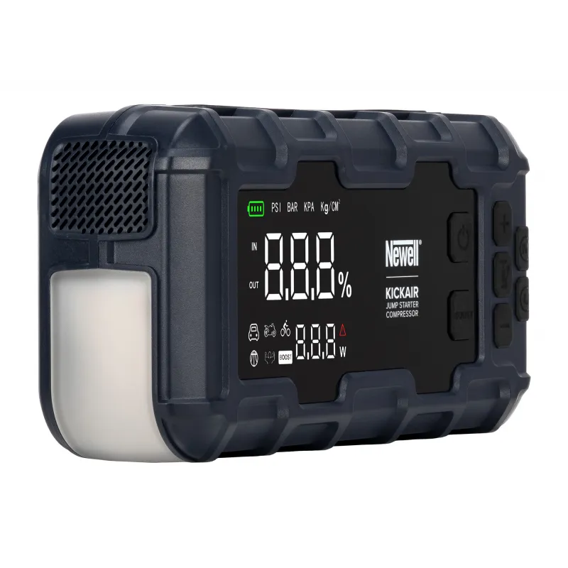 Kiedy akumulator odmawia posłuszeństwa, „łapiesz gumę” z dala od domu, a telefon rozładowuje się w najmniej odpowiednim momencie – z pomocą przychodzi Newell KickAir. To kompaktowe urządzenie 4 w 1 łączące funkcję „jump startera”, elektrycznej pompki, power banku i latarki LED. Z pojemnością 20000mAh, prądem szczytowym 2000A i maksymalnym ciśnieniem na poziomie 11 bar, KickAir oferuje coś naprawdę cennego – niezależność w sytuacjach awaryjnych.