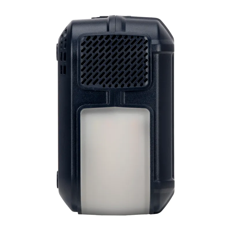 - Tryby latarki: światło ciągłe, stroboskop, pomarańczowe światło awaryjne i SOS
