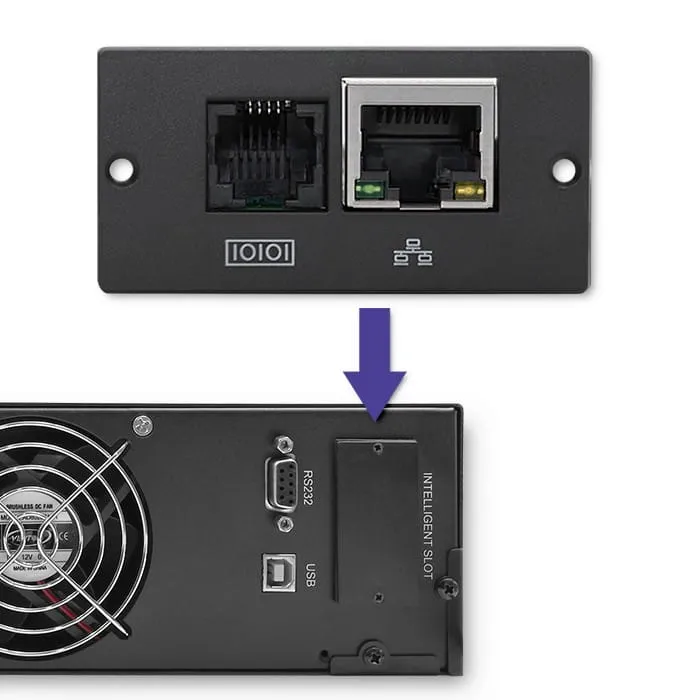 - możliwość montażu karty SNMP lub podłączenia adaptera SNMP – to standard zarządzania siecią, dzięki któremu w szybki i prosty sposób zbierzesz informacje o podłączony urządzeniach, czy też skonfigurujesz ich parametry