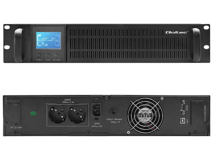 - Zasilacz awaryjny firmy Qoltec UPS RACK 1000VA/800W LCD