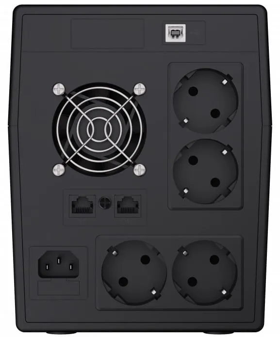 - Zasilacz UPS o mocy całkowitej 1200W i mocy pozornej 2000VA został wyposażony w akumulatory AGM marki Green Cell, które zapewniają stabilne parametry dla Twoich urządzeń.