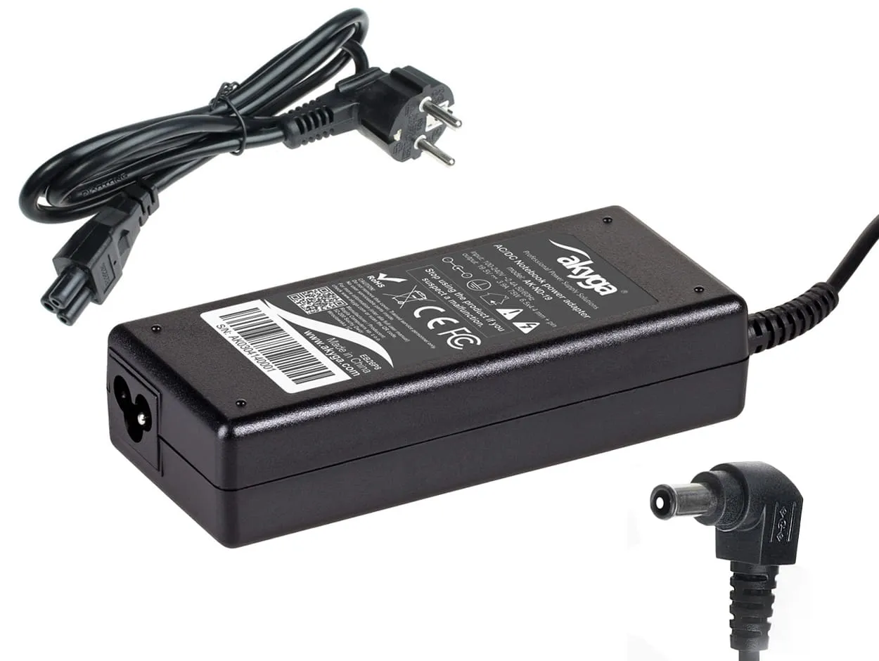 AK-ND-19 to zasilacz o mocy 75W, kompatybilny ze wszystkimi modelami laptopów zasilanymi prądem 19.5V i maksymalnie 3.9A, oraz z wtyczką 6.5*4.4mm + pin.