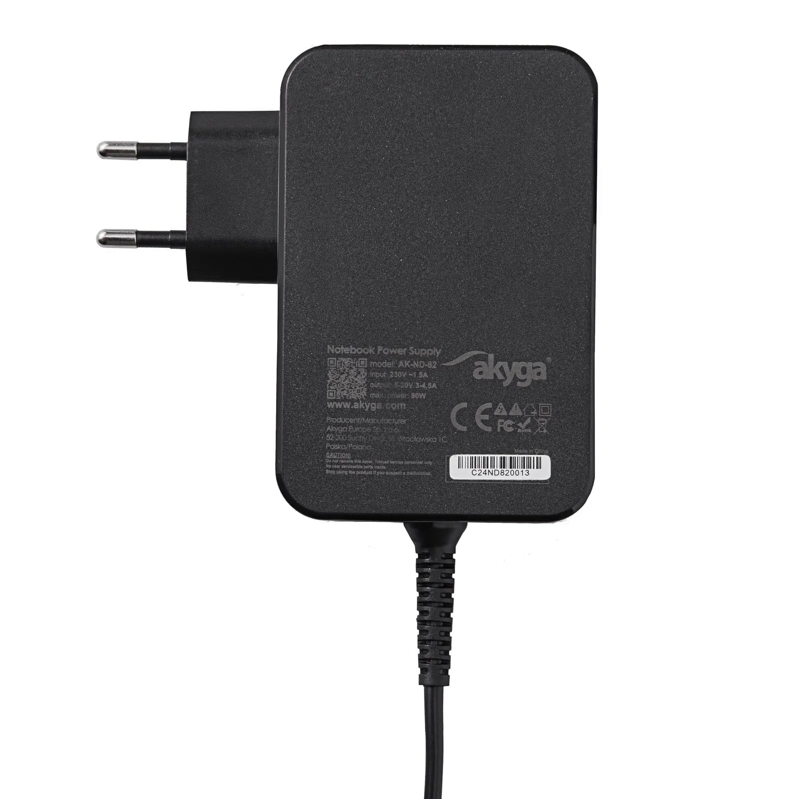 Kluczowym atrybutem zasilacza AK-ND-82 jest jego wszechstronne złącze USB-C. Dzięki niemu bez problemu zasilimy szeroką gamę urządzeń, od smartfonów i tabletów po laptopy czy konsole do gier. Co więcej, przytwierdzony na stałe kabel o długości 1.8 m zapewnia wygodę użytkowania i elastyczność.