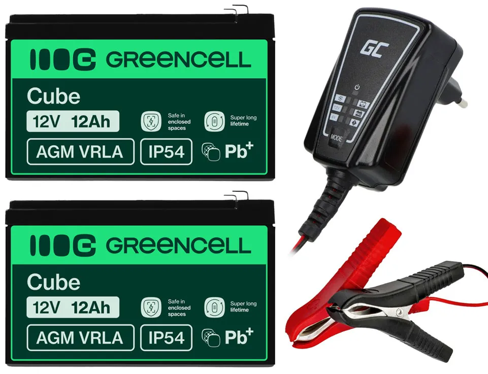 - Dwa akumulatory firmy Green Cell AGM VRLA 12V 12Ah