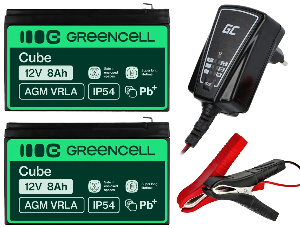 - Dwa akumulatory firmy Green Cell AGM VRLA 12V 8Ah