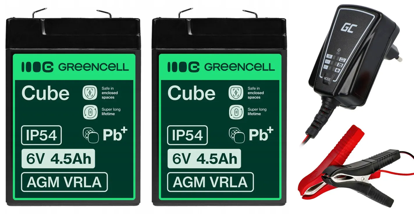 - Dwa akumulatory firmy Green Cell AGM VRLA 6V 4.5Ah