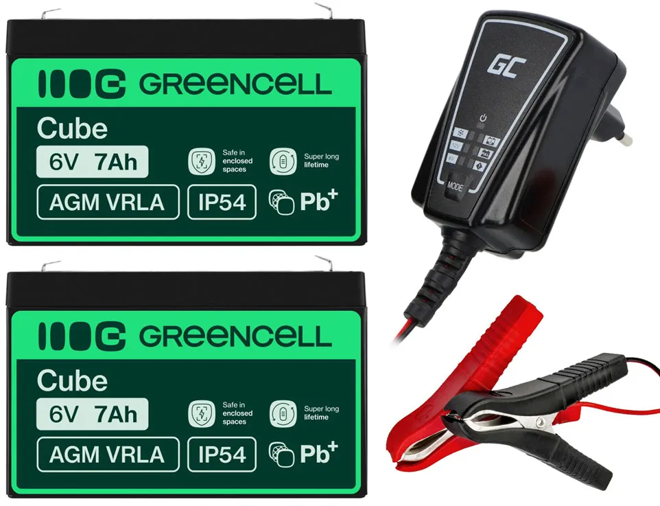 - Dwa akumulatory firmy Green Cell AGM VRLA 6V 15Ah