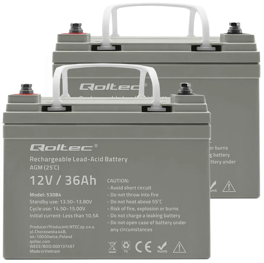 - Dwa akumulatory firmy Qoltec AGM LongLife 12V 36Ah