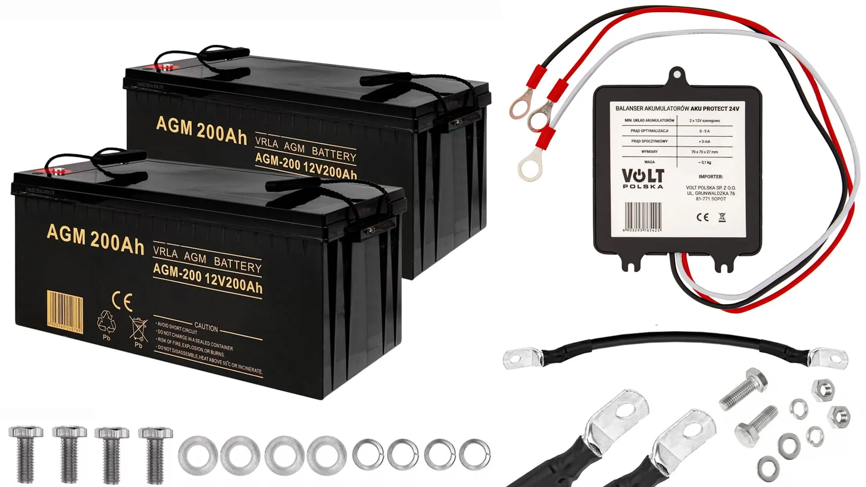 - Dwa akumulatory firmy Volt Polska VRLA AGM 12V 200Ah