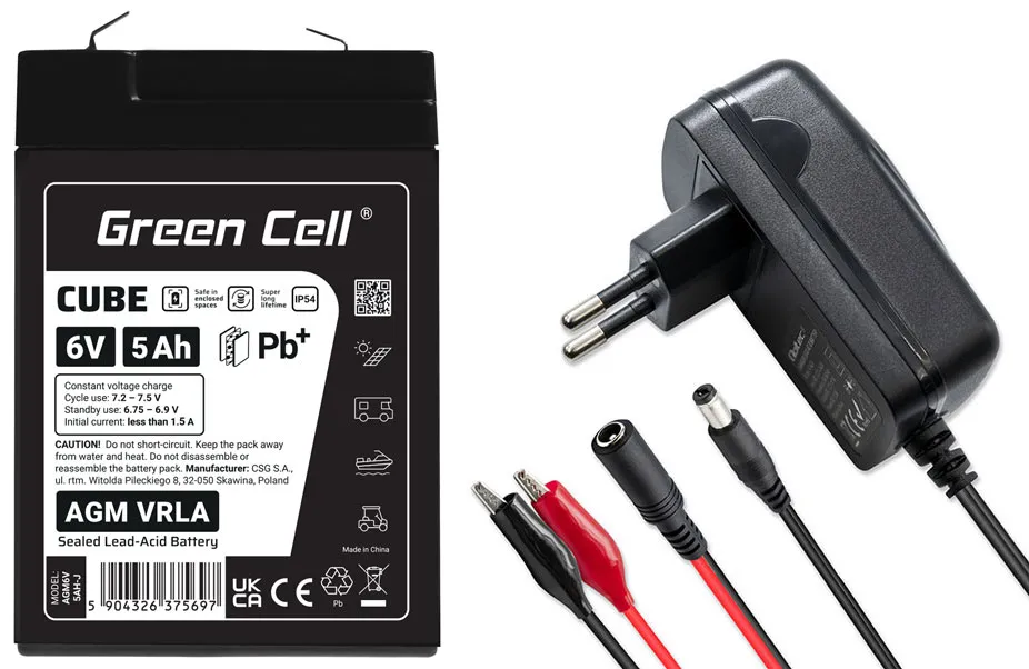 - Akumulator firmy Green Cell Cube AGM VRLA IP54 6V 5Ah