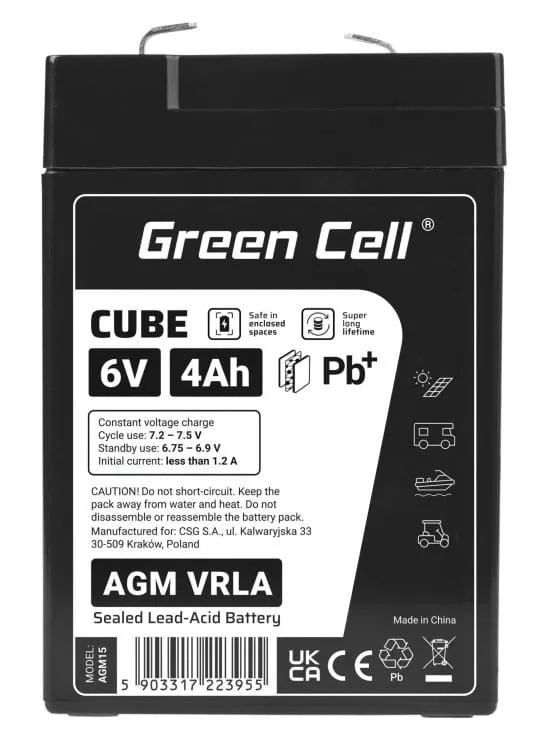 - Akumulator firmy Green Cell Cube AGM VRLA IP54 6V 4Ah
