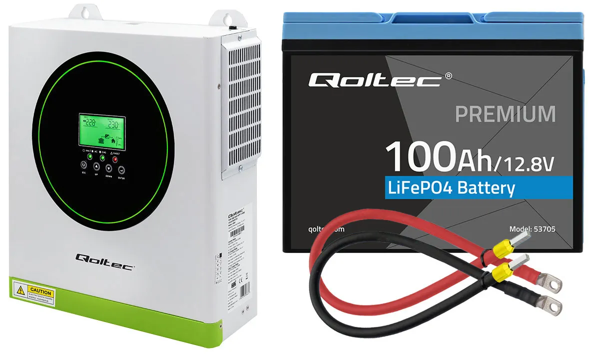 - Hybrydowy inwerter solarny Off-Grid Qoltec Power Factor 1.0 12V 1500W 100A 500V