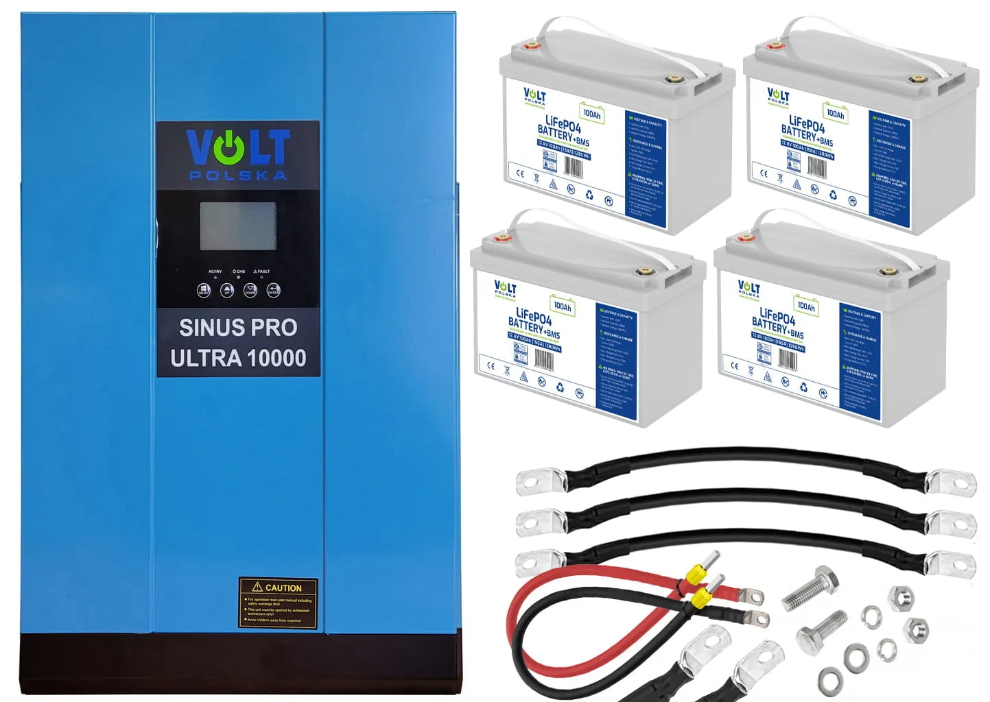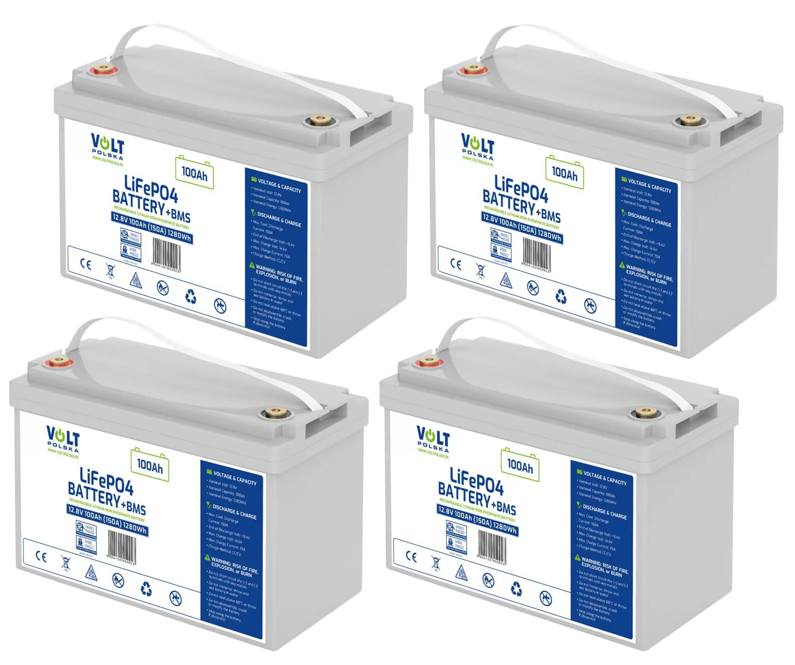 - Cztery akumulatory firmy Volt Polska LiFePO4 12,8V 100 Ah (150A) + Bezobsługowy BMS