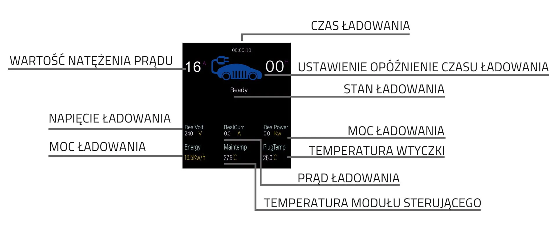 Możesz ustawić opóźniony czas rozpoczęcia ładowania o 1, 2, 5 lub nawet 8 godzin i zaoszczędzić na kosztach energii np. korzystając z taryfy nocnej, jest to rozwiązanie bardziej ekonomiczne, gdyż nie obciążamy systemu. Wystarczy podłączyć ładowarkę do zasilania a następnie przed podłączeniem samochodu wcisnąć przycisk opóźnienia określoną ilość razy. Naciskając przycisk z ikonką zegara, po każdym kliknięciu następuje opóźnienie ładowania o 1 godzinę.