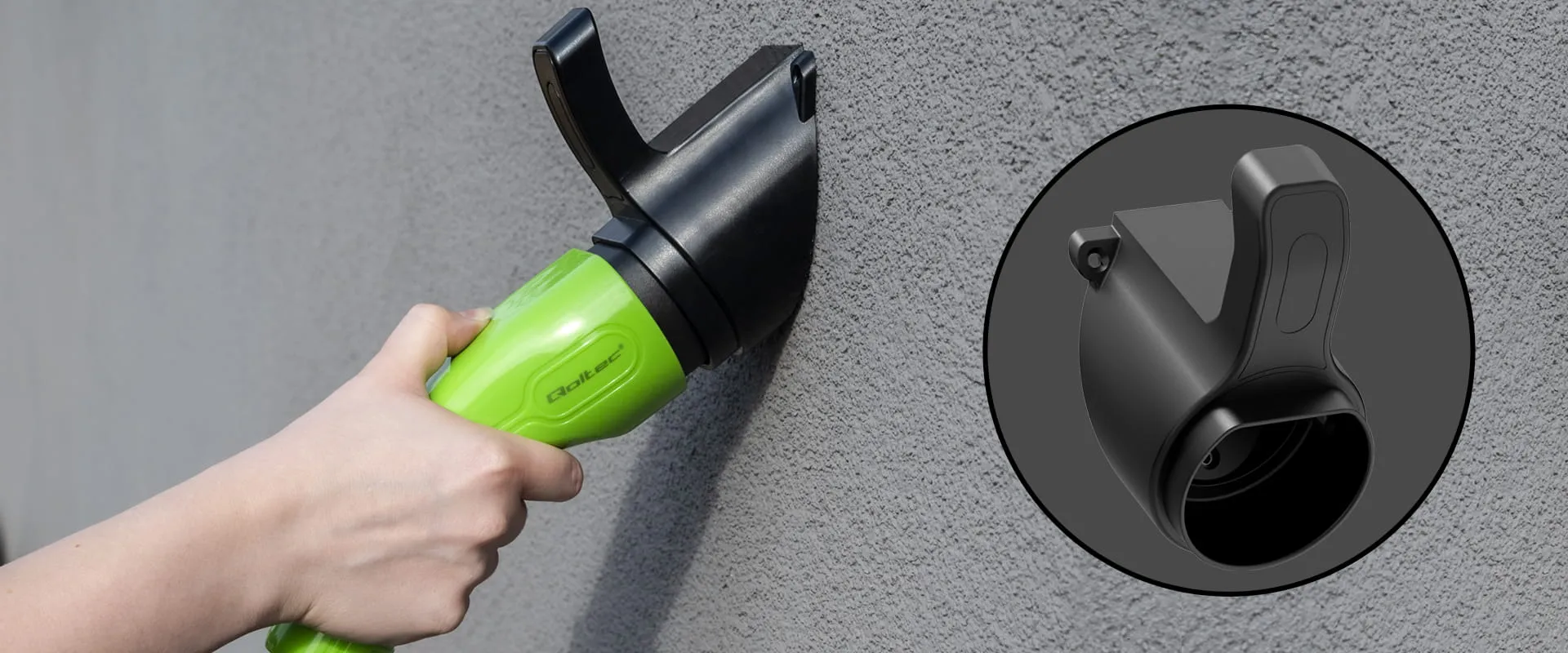 Jeśli chcesz zamontować ładowarkę EV na ścianie należy wybrać do tego odpowiednie miejsce, najlepiej blisko samochodu i źródła zasilania. Konieczna będzie również instalacja wyłącznika różnicowoprądowego - najlepszym wyborem będzie wyłącznik RCD typ B jako środek pełnej ochrony uzupełniającej. Zadbaj o to by było to miejsce zabezpieczone przed wilgocią, pozbawione wszelkich uszkodzeń mechanicznych i nie narażone na bezpośrednie odziaływanie promieni słonecznych. Upewnij się koniecznie czy tak jest. Wysoki poziom wygody zapewni 5 metrowy kabel ładowania z ergonomiczną wtyczką.
