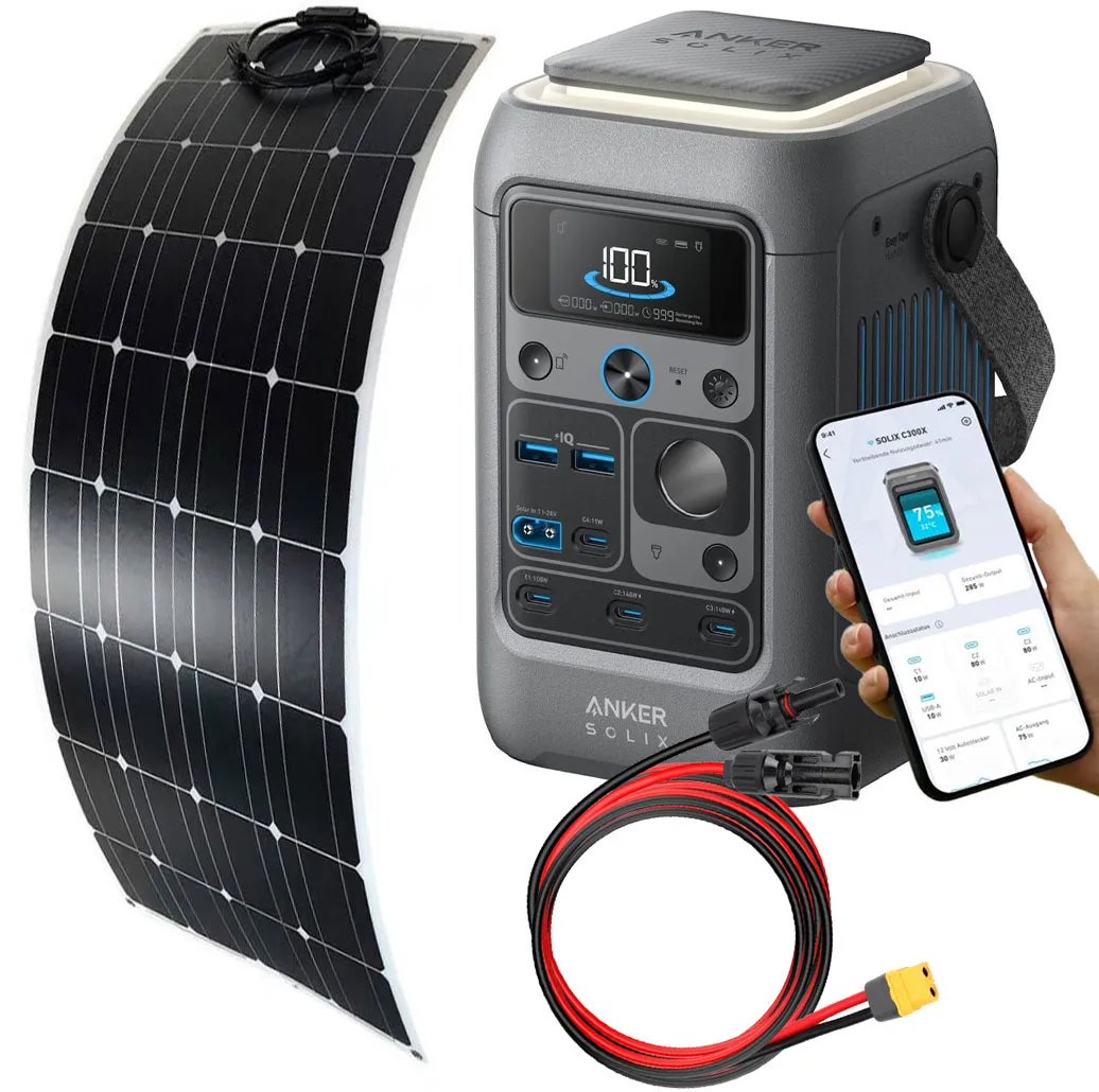 - C300 DC nie jest kompatybilny z panelami słonecznymi Anker SOLIX PS30 ani innymi panelami słonecznymi USB-C 5 V-3 A.