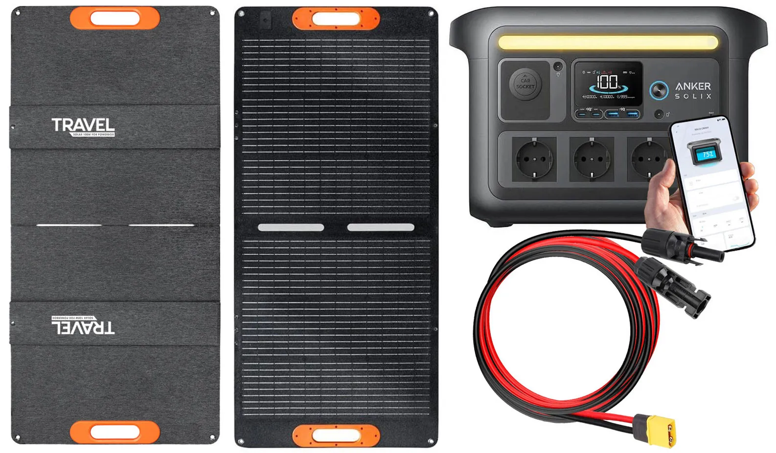 Do serii stacji Travel Box dedykowany jest przenośny, składany panel solarny Travel Solar o mocy 100W. Zapewnia komfortowy i bezpieczny dostęp do energii elektrycznej — niezależnie od miejsca i warunków. Został zaprojektowany z myślą o mobilności i trwałości, z myślą o osobach poszukujących niezależnego źródła zasilania. To nowoczesne rozwiązanie, które doskonale sprawdzi się podczas podróży, biwaku czy w ogrodzie.