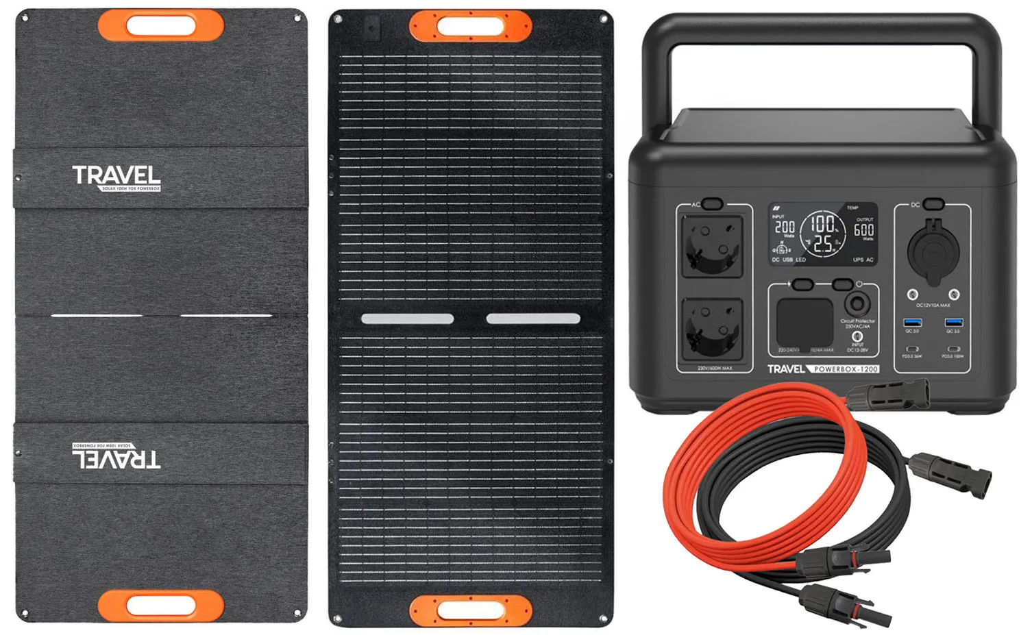 Do serii stacji Travel Box dedykowany jest przenośny, składany panel solarny Travel Solar o mocy 100W. Zapewnia komfortowy i bezpieczny dostęp do energii elektrycznej — niezależnie od miejsca i warunków. Został zaprojektowany z myślą o mobilności i trwałości, z myślą o osobach poszukujących niezależnego źródła zasilania. To nowoczesne rozwiązanie, które doskonale sprawdzi się podczas podróży, biwaku czy w ogrodzie.