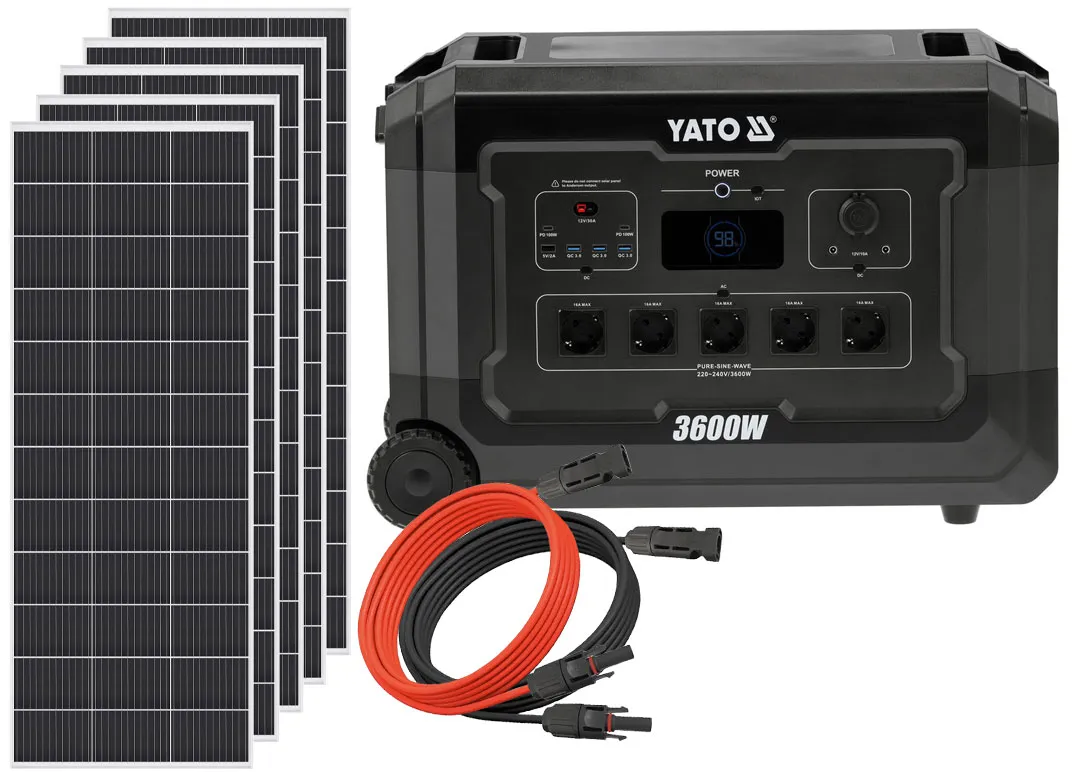 Przenośna stacja zasilania YATO YT-83096 3600W to urządzenie o gigantycznej pojemności 3072Wh i mocy wyjściowej 3600W, zaprojektowane do obsługi najbardziej wymagających zadań. Sercem stacji są ogniwa LiFePO4, które gwarantują ponadprzeciętną żywotność (ponad 3500 cykli) oraz bezpieczeństwo użytkowania. To nie tylko powerbank – to kompletne centrum energetyczne dla Twojego domu, warsztatu czy kampera.