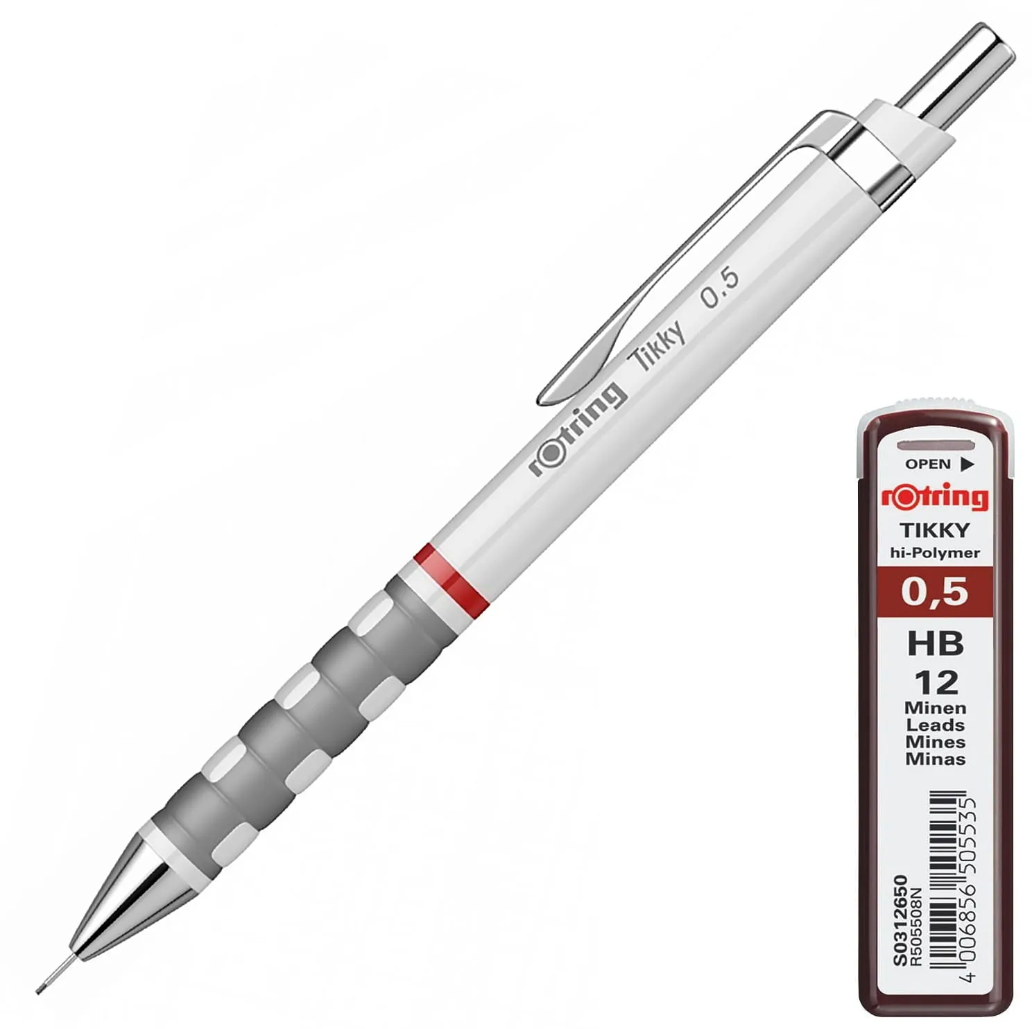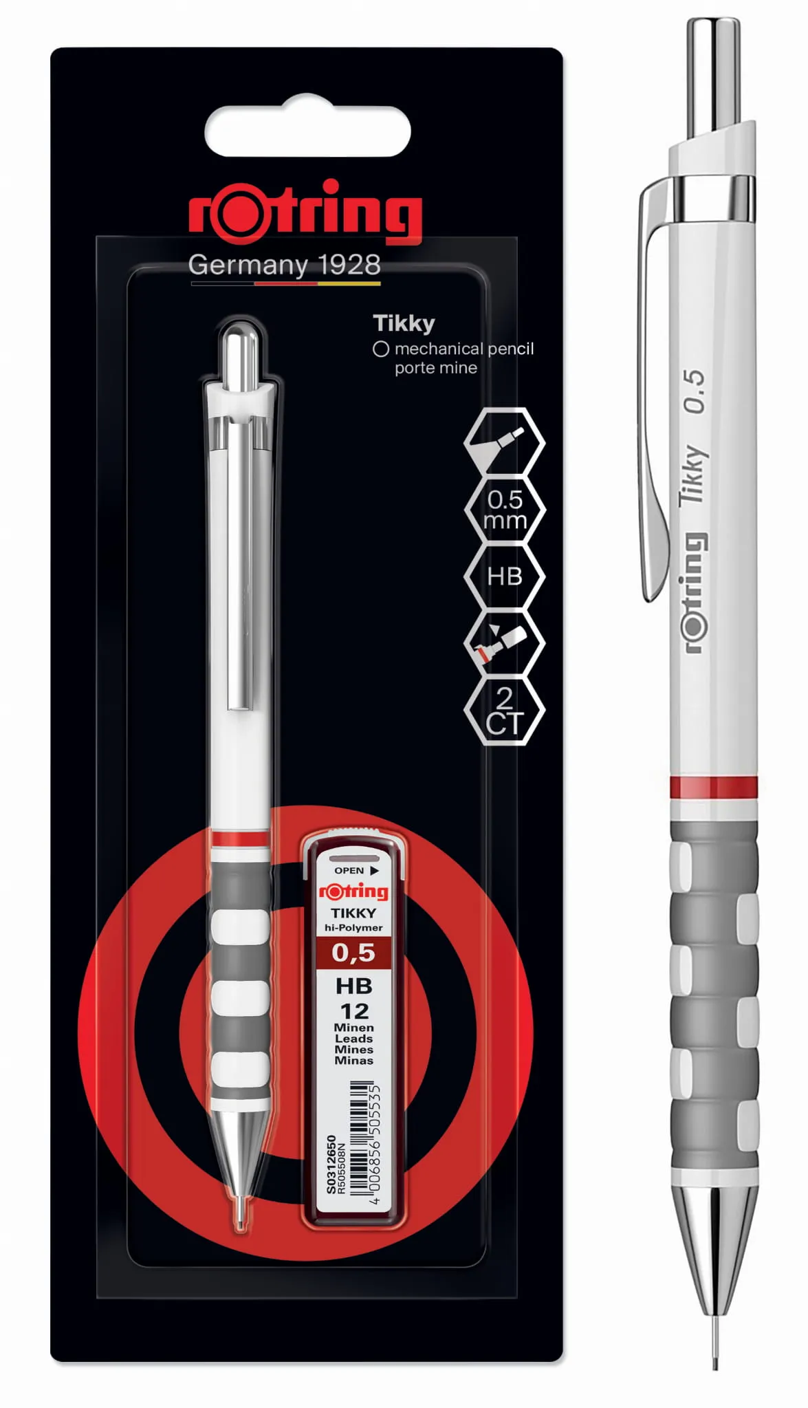 Zestaw rOtring Tikky: biały ołówek automatyczny 0.5mm + wkłady grafitowe HB 0.5mm