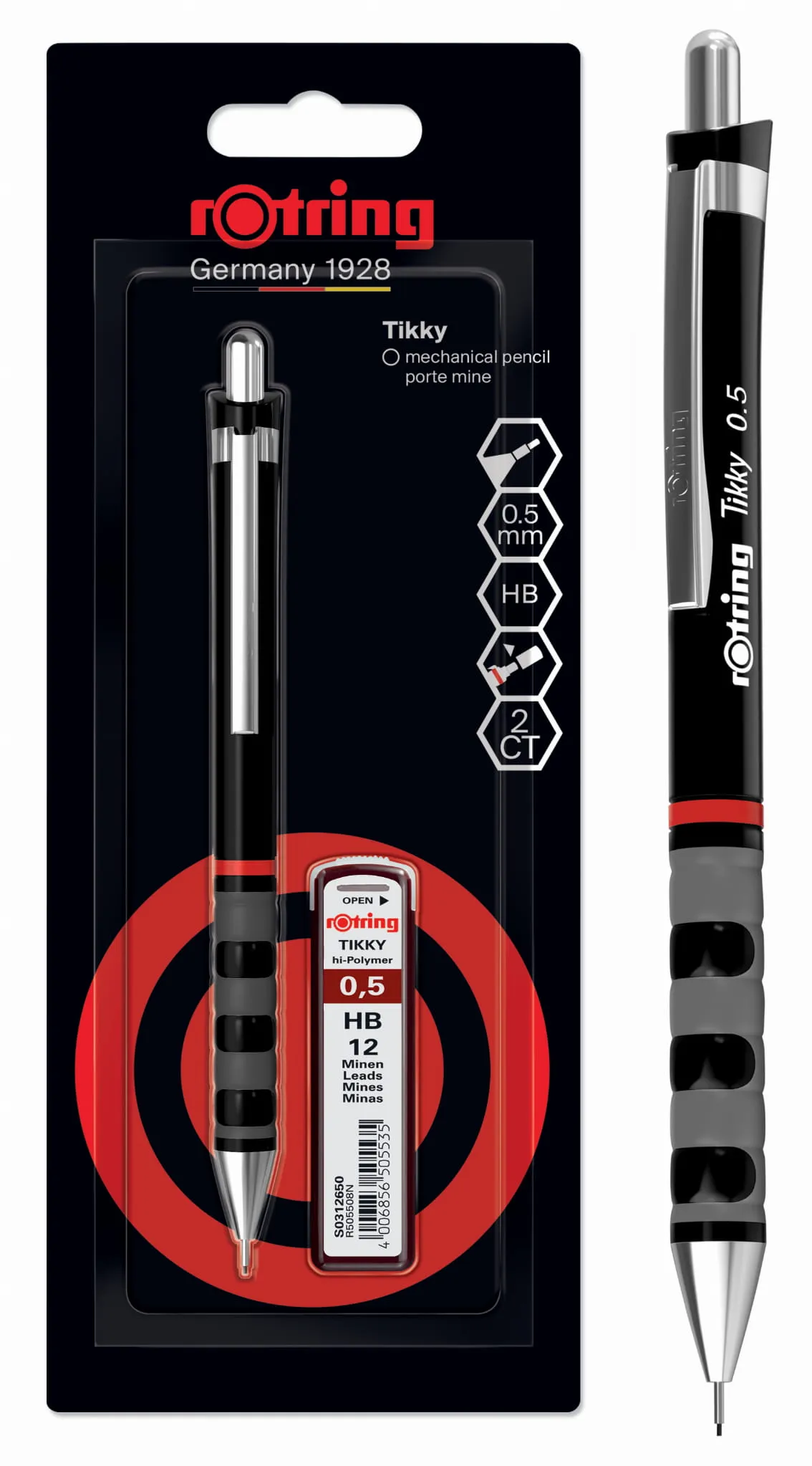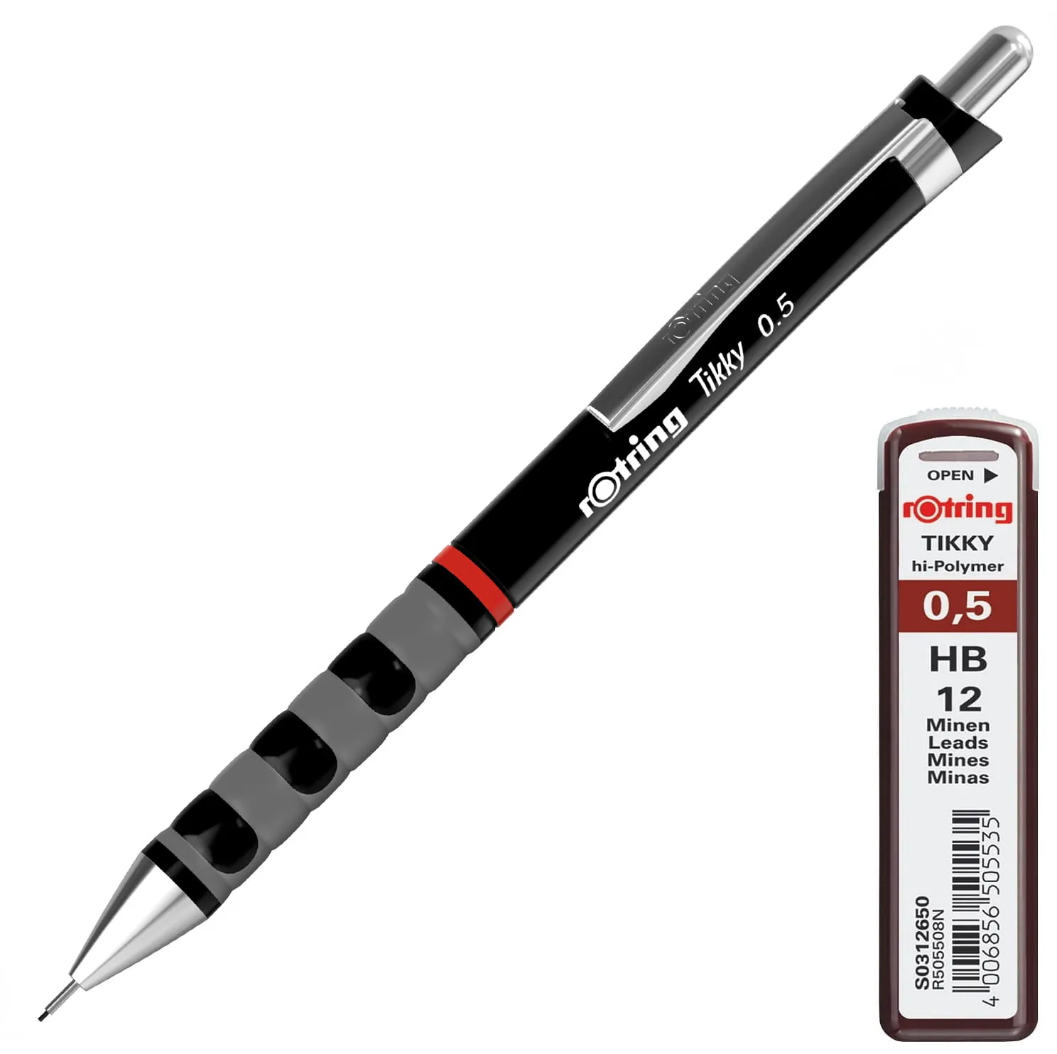 Zestaw rOtring Tikky: czarny ołówek automatyczny 0.5mm + wkłady grafitowe HB 0.5mm