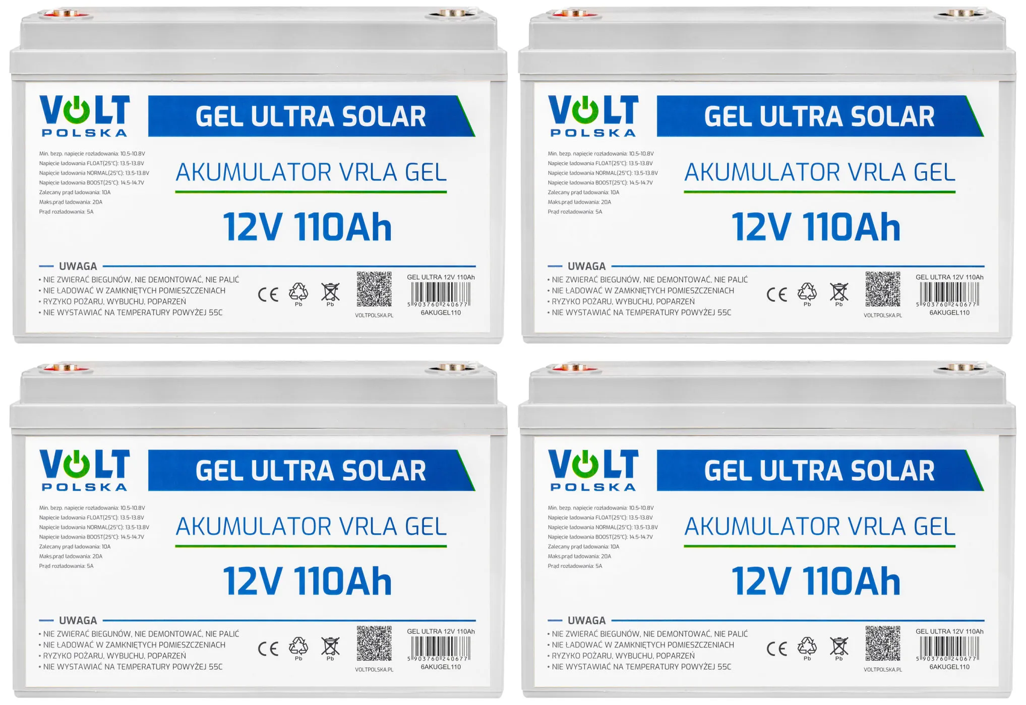 - Cztery akumulatory żelowe firmy Volt Polska GEL VPRO Premium 12V 110Ah