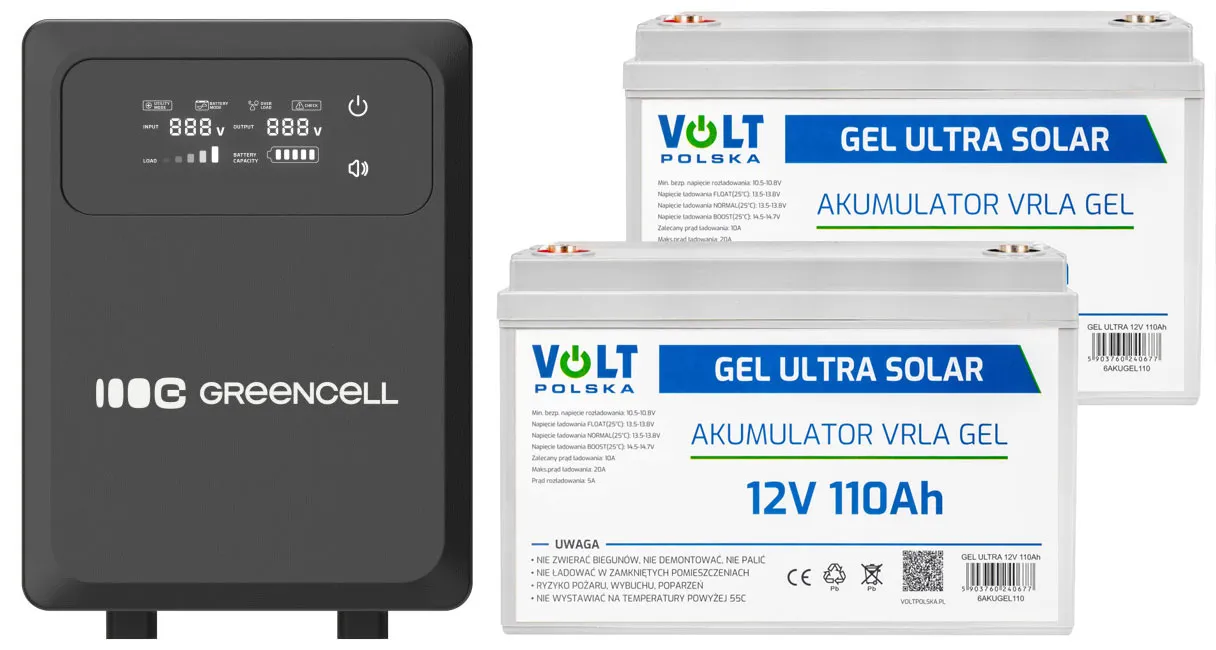 - Dwa akumulatory żelowe firmy Volt Polska GEL VPRO Premium 12V 110Ah