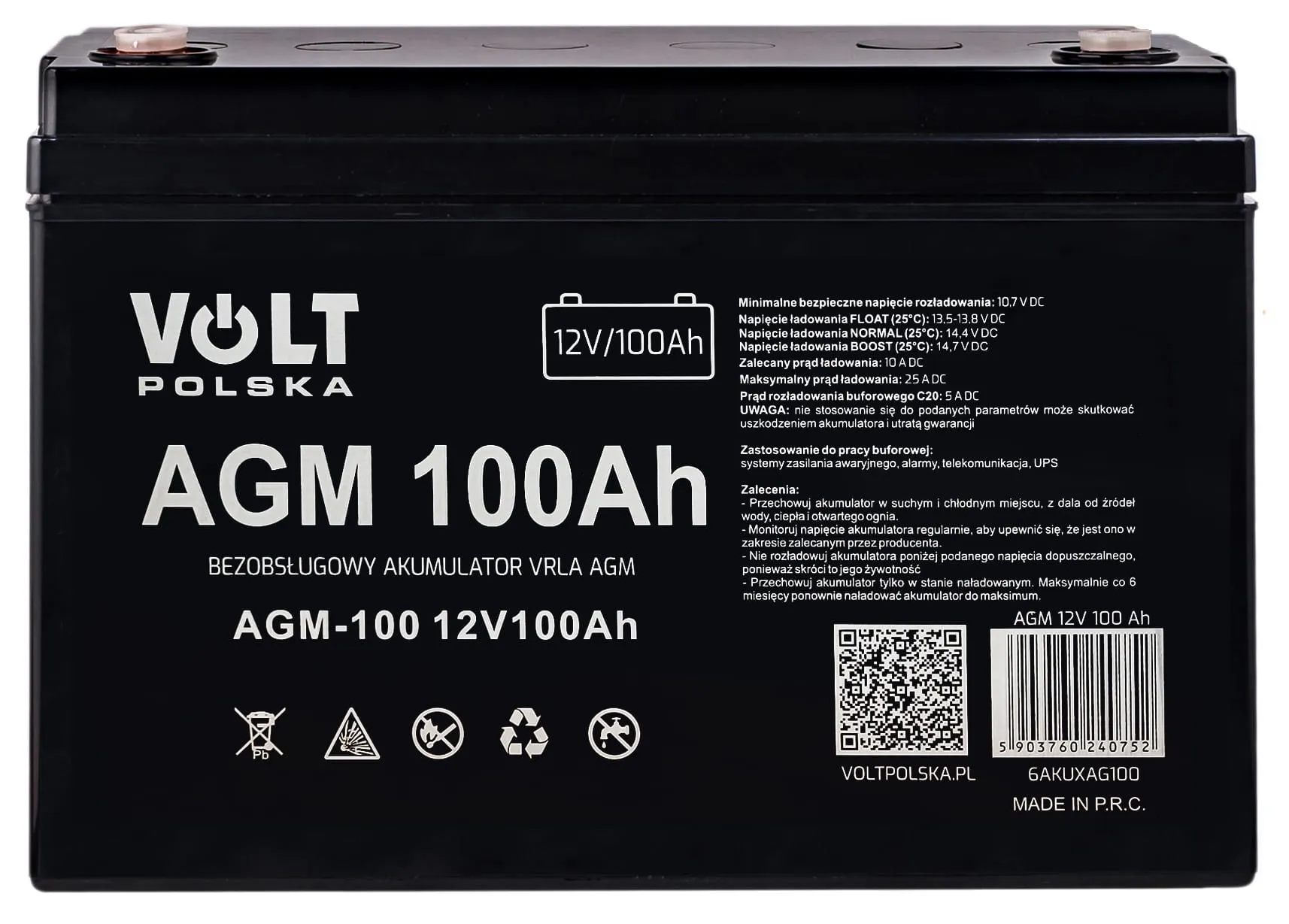 - Akumulator firmy Volt Polska VRLA AGM 12V 100Ah