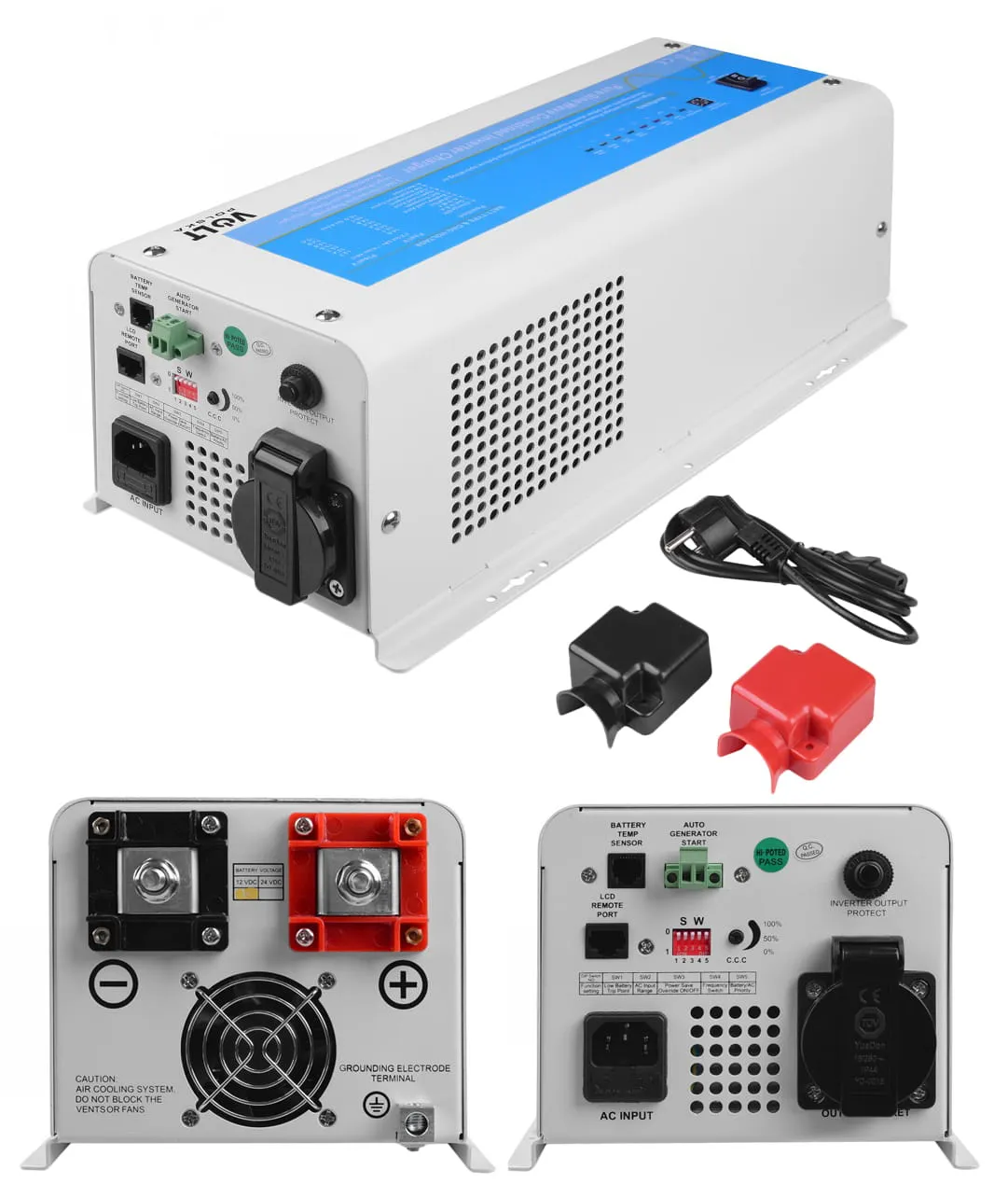 Zasilacz awaryjny Power Sinus 1500 12V jest kombinacją przetwornicy, ładowarki i automatycznego przełącznika AC w jednym układzie. Urządzenie służy głównie jako zasilacz UPS z przebiegiem napięcia Czysty Sinus. Stosuje się je wszędzie tam gdzie potrzebne jest stabilne napięcie oraz bardzo duży prąd rozruchowy 1500W, w tym chwilowy (do 20 sekund) 5000VA. Jedną z zalet zasilacza Power Sinus 1500 12V jest możliwość podłączenia do niego różnego rodzaju akumulatorów o napięciu 12V.