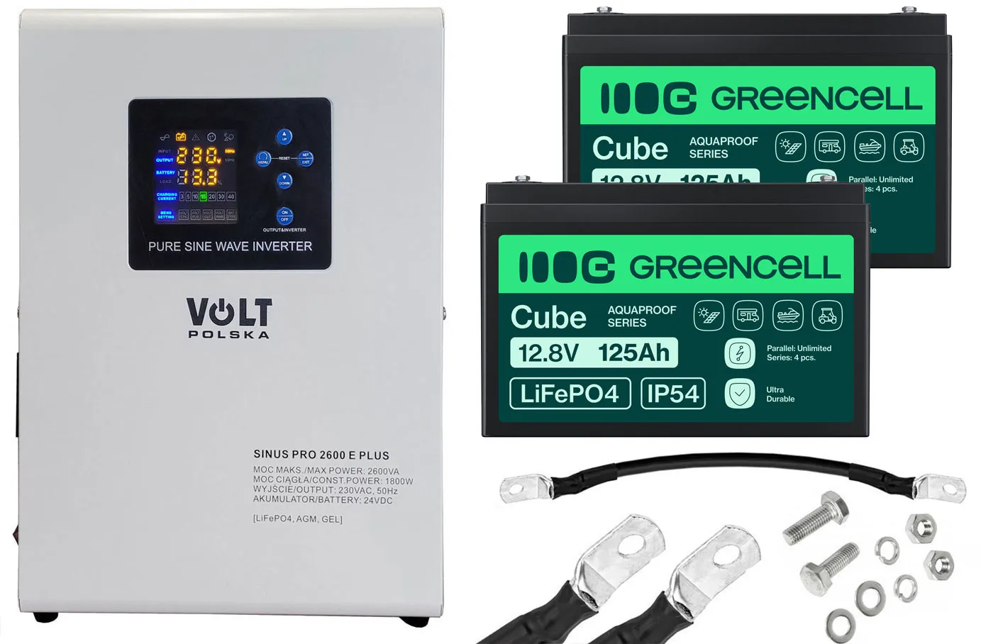 - Dwa akumulatory firmy Green Cell Cube LiFePO4 125Ah 12.8V 1600Wh